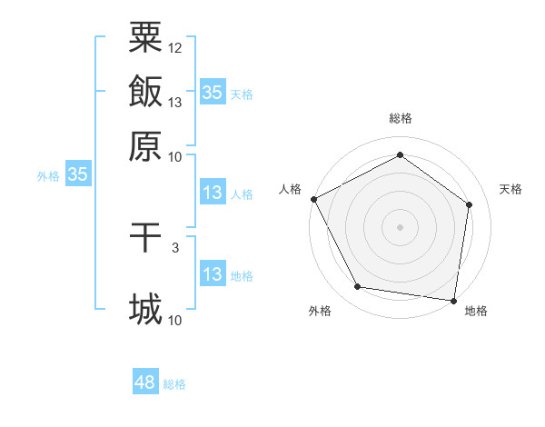 粟飯原 干城さんの地格は13画の5点!