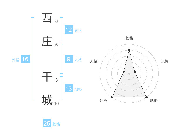 西庄 干城さんの総格は25画の4点!
