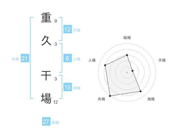 重久 干場さんの総格は27画の3点!