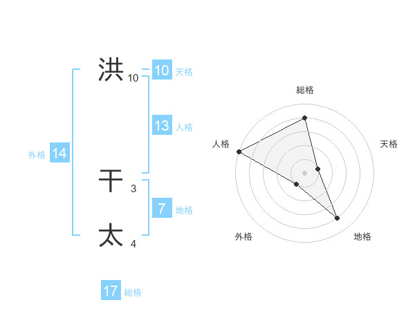 洪 干太さんの総格は17画の4点!
