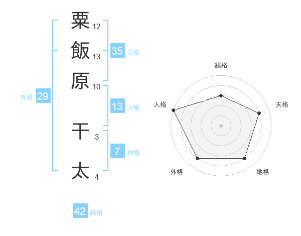 粟飯原 干太さんを姓名の画数から五運を鑑定