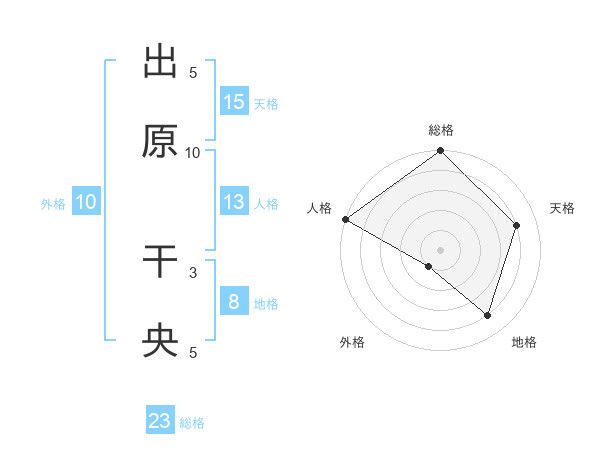 出原 干央さんの総格は23画の5点!