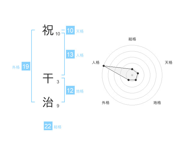 祝 干治さんの総格は22画の1点!