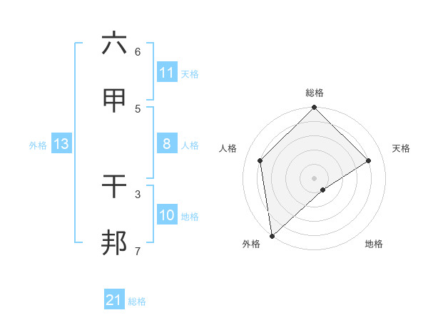 六甲 干邦さんを姓名の画数から五運を鑑定