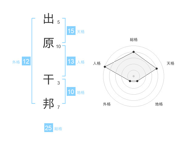 出原 干邦さんの天格は15画の4点!