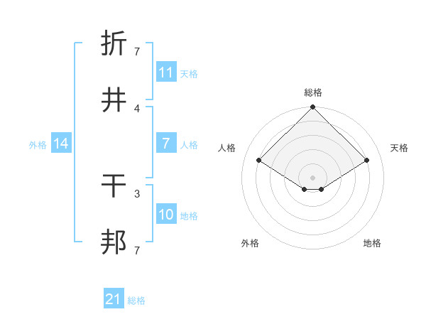 折井 干邦さんの総格は21画の5点!