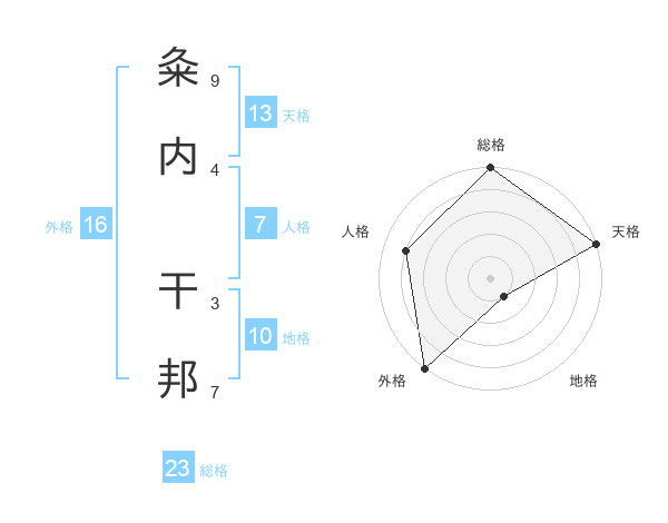 粂内 干邦さんを姓名の画数から五運を鑑定
