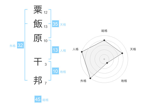 粟飯原 干邦さんを姓名の画数から五運を鑑定