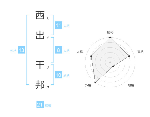 西出 干邦さんの総格は21画の5点!