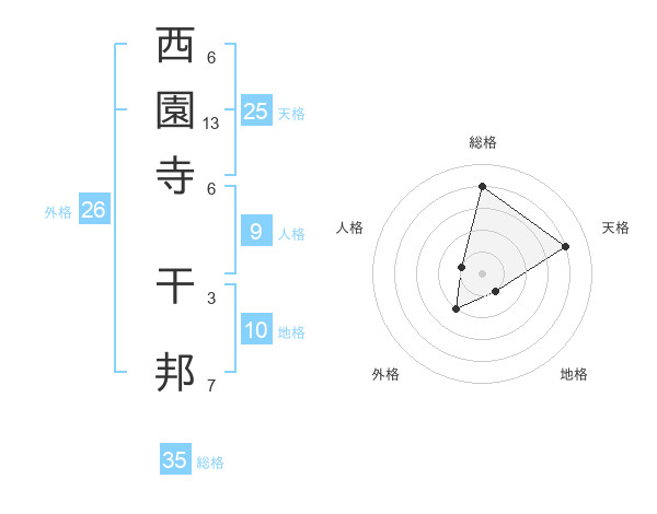 西園寺 干邦さんの総格は35画の4点!