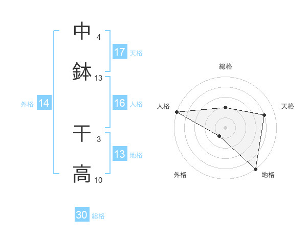 中鉢 干高さんを姓名の画数から五運を鑑定
