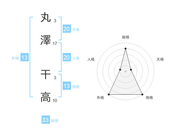 丸澤 干高さんを姓名の画数から五運を鑑定