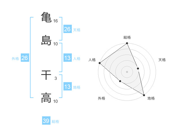 亀島 干高さんの総格は39画の5点!