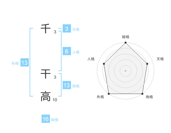 千 干高さんの総格は16画の5点!