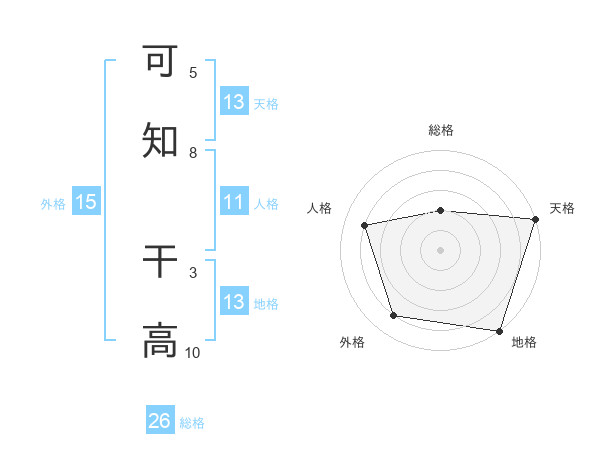 可知 干高さんの天格は13画の5点!
