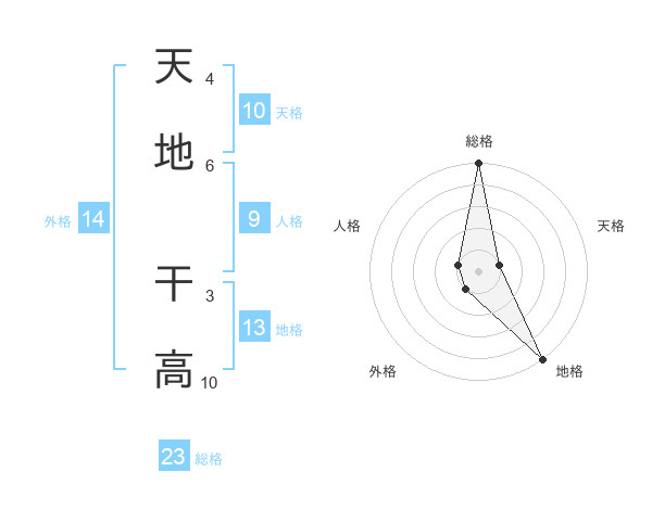 天地 干高さんの総格は23画の5点!
