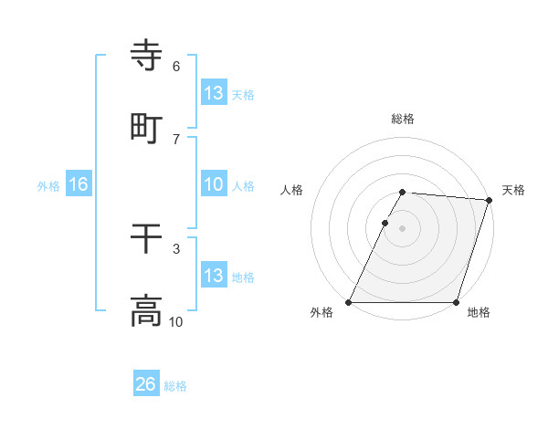 寺町 干高さんの総格は26画の2点!