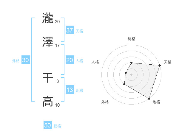 瀧澤 干高さんを姓名の画数から五運を鑑定