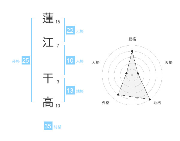 蓮江 干高さんを姓名の画数から五運を鑑定