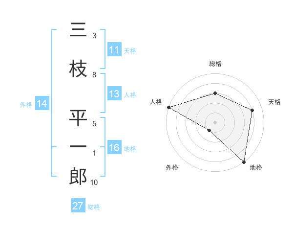 三枝 平一郎さんを姓名の画数から五運を鑑定
