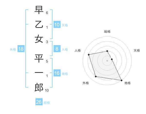 早乙女 平一郎さんの総格は26画の2点!
