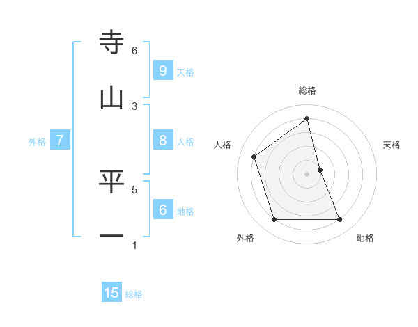 寺山 平一さんの総格は15画の4点!