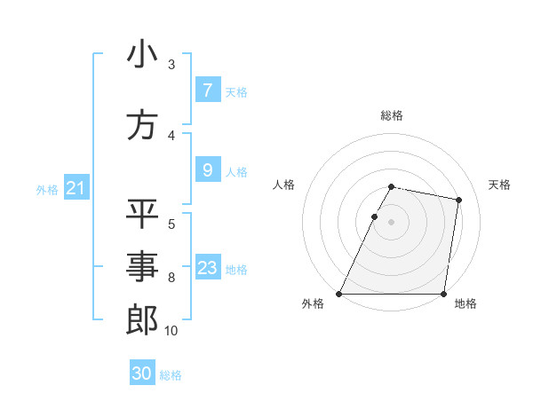 小方 平事郎さんを姓名の画数から五運を鑑定