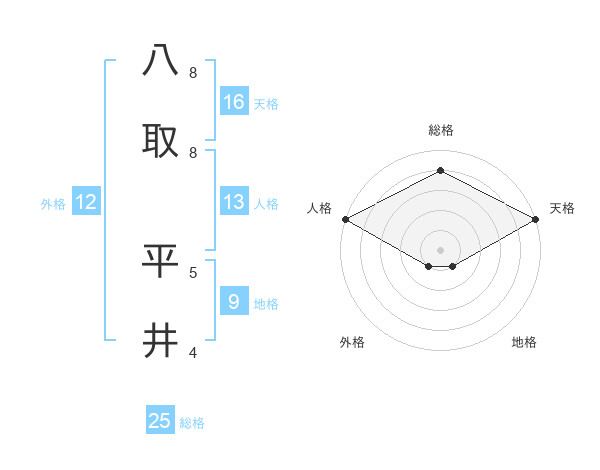 八取 平井さんの総格は25画の4点!