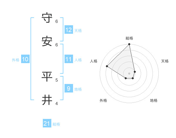 守安 平井さんの総格は21画の5点!