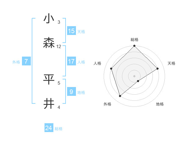 小森 平井さんの総格は24画の5点!