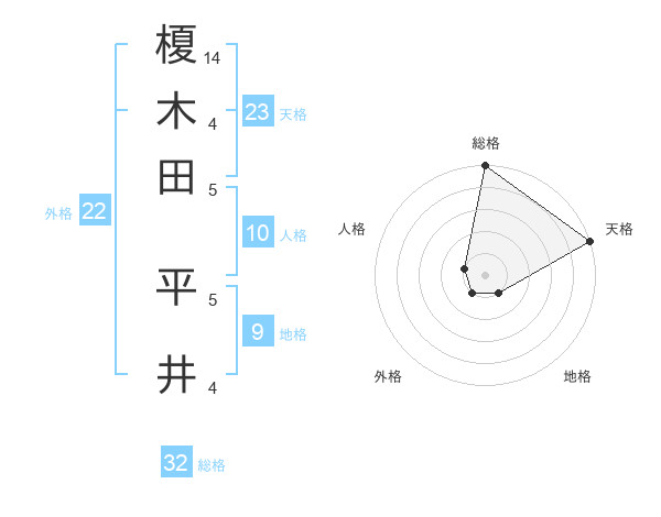 榎木田 平井さんの総格は32画の5点!