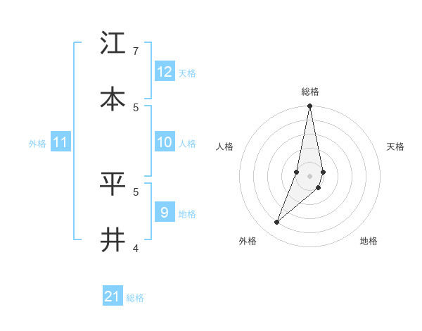 江本 平井さんの総格は21画の5点!