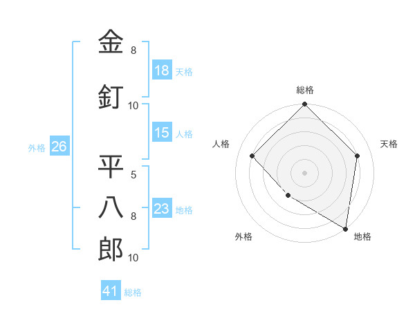 金釘 平八郎さんを姓名の画数から五運を鑑定