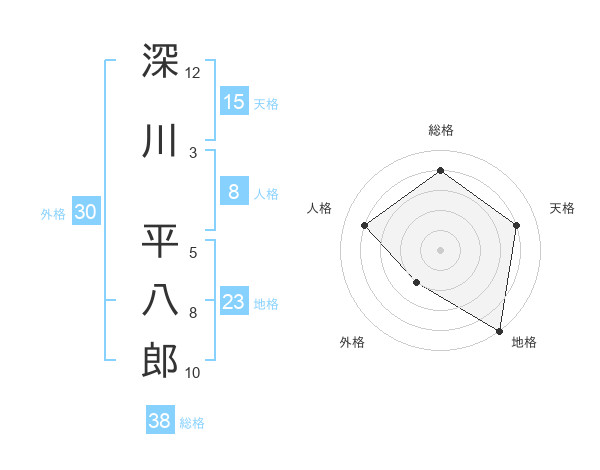 深川 平八郎さんの総格は38画の4点!