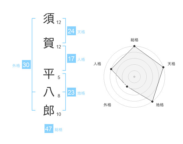 須賀 平八郎さんの総格は47画の5点