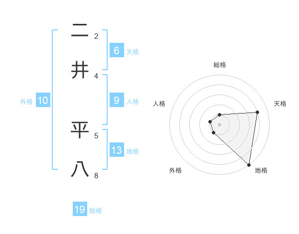 二井 平八さんの地格は13画の5点!
