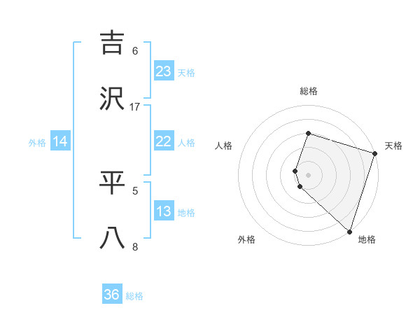 吉沢 平八さんを姓名の画数から五運を鑑定