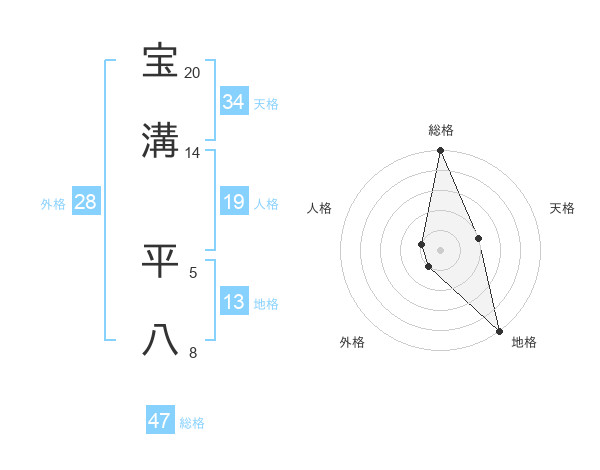 宝溝 平八さんの総格は47画の5点!