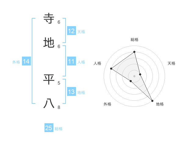寺地 平八さんの総格は25画の4点!