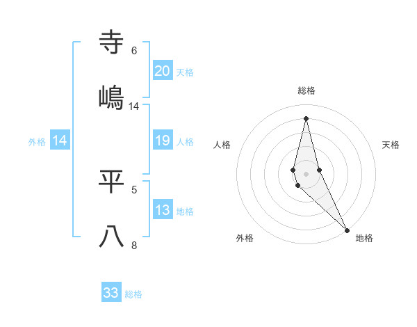 寺嶋 平八さんを姓名の画数から五運を鑑定