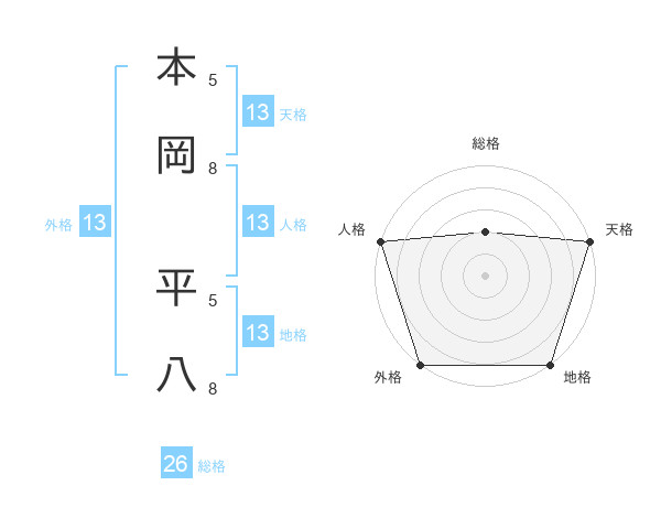 本岡 平八さんの天格は13画の5点!