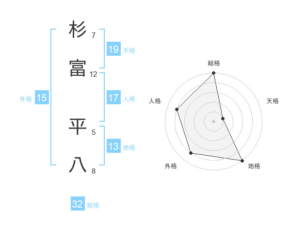 杉富 平八さんの総格は32画の5点!