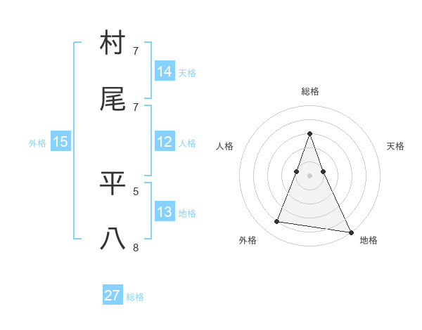村尾 平八さんの総格は27画の3点!