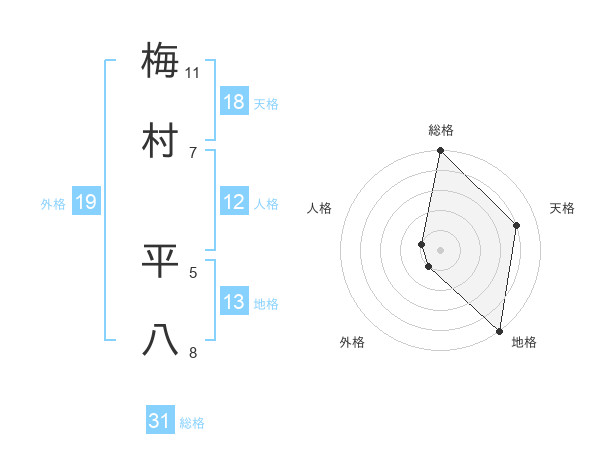 梅村 平八さんの総格は31画の5点!