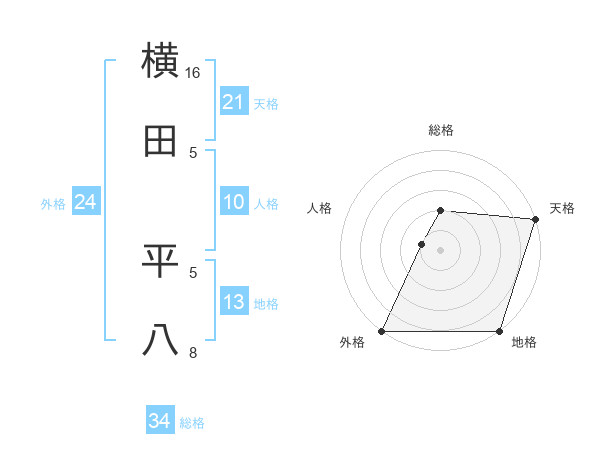 横田 平八さんの総格は34画の2点!