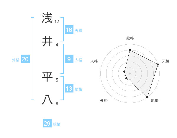 浅井 平八さんの総格は29画の4点!