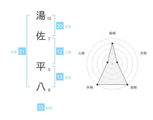 湯佐 平八さんを姓名の画数から五運を鑑定