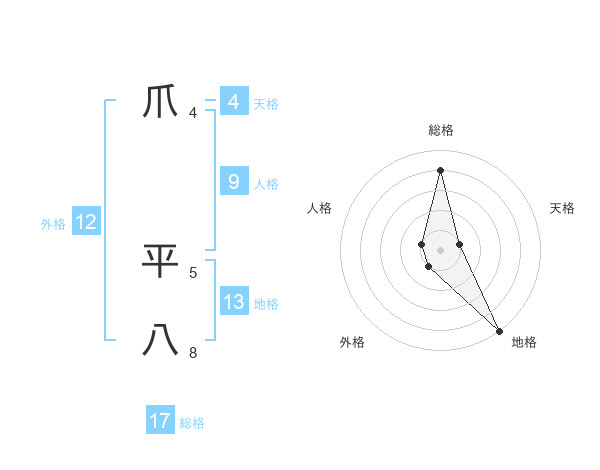 爪 平八さんの地格は13画の5点!