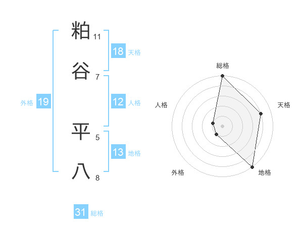 粕谷 平八さんを姓名の画数から五運を鑑定