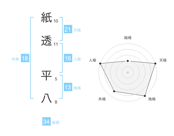 紙透 平八さんの天格は21画の5点!